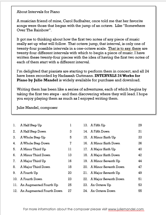 INTERVALS - 24 WORKS FOR PIANO by Julie Mandel